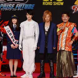 ほか会見には「手裏剣戦隊ニンニンジャー THE MOVIE 恐竜殿さまアッパレ忍法帖!」より、西川俊介、松本岳、中村嘉惟人、矢野優花、山谷花純、多和田秀弥、主題歌を担当する伊勢大貴、中澤祥次郎監督、「劇場版 仮面ライダードライブ サプライズ・フューチャー」より、竹内涼真、内田理央、上遠野太洸、稲葉友、クリス・ペプラー、ゲスト出演の真剣佑、筧美和子、主題歌を担当した松岡充、柴崎貴行監督が出席。