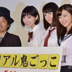 15日、都内にて行われた映画『リアル鬼ごっこ』(7月11日公開)完成披露試写会に篠田麻里子、真野恵里菜、園子温監督とともに出席した。