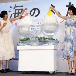 イベントでは、作品の内容にちなみ巨大かき氷が登場。シロップをかける場面では、二人ともはしゃいでいた。