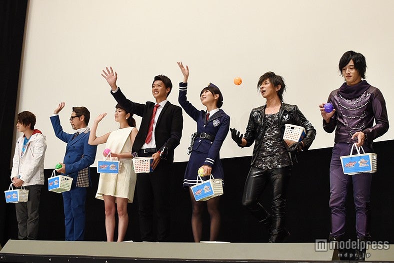 竹内、内田のほか初日舞台挨拶には『仮面ライダードライブ』のレギュラー陣である、上遠野太洸、稲葉友、クリス・ペプラー、さらに劇場版ゲストの筧美和子、テレビ主題歌と劇場版の主題歌『re-ray』を歌う松岡充も出席。筧は「子どもとペアルックする、ペアルック母ちゃんになりたいですし、お母さん役もできたらいいなとか、欲張りなことを考えています」と茶目っ気たっぷりに語り、上遠野は「家庭を築いていて、このお仕事も続けていたい。仮面ライダーシリーズもまたやらせていただきたいです」と意欲。稲葉は「健康って大事。健康な身体で、お芝居を続けてられればいいなと思います」と未来に想いを馳せていた。(modelpress編集部)