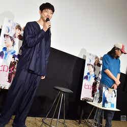 7日、都内で映画『ヒロイン失格』(9月19日公開)の試写会が行われ、坂口と英勉監督が登壇。幸田もも子氏の人気コミックを実写映画化した今作は、桐谷美玲演じる主人公の女子高生・松崎はとりを幼なじみの寺坂利太(山崎)と学校イチのモテ男・弘光廣祐(坂口)が取り合うという三角関係が見どころだが、英監督は「賢人くんと坂口くんがお互いの演技を見ているので、僕は『今日は弘光がリードしてるよ。利太が巻き返してきたよ』とか言ってた(笑)」とイケメン2人のライバル心を掻き立てたエピソードを紹介。坂口は「朝現場に入ると、監督が近づいてきて『昨日の利太かっこよかったわ~』って(笑)。負けないようにというのはありましたね」と笑顔で振り返った。