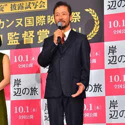 10日、都内で行われた映画「岸辺の旅」(10月1日公開)日本凱旋披露試写会に、同作で本年度のカンヌ国際映画祭「ある視点」部門で日本人初の監督賞を受賞した黒沢清監督とともに出席。かねてから夫婦役にじっくり挑んでみたかったという浅野は「深津さんとは『素敵な金縛り』という映画でご一緒させてもらったことがあって、『深津さんと一緒にできたらなぁ』と思っていました」と明かし、「その夢がこの作品で叶って、なおかつ黒沢監督に12年ぶりに呼んでいただいたので、一番いいカタチで僕の夢が叶いました」と喜びを語った。