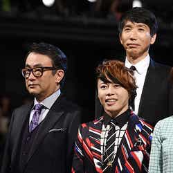 5日、都内で映画『ギャラクシー街道』(10月24日公開)完成披露試写会舞台挨拶が行われ、主演の香取、綾瀬らが登壇した。同作は宇宙にあるハンバーガーショップで物語が展開するが、それを生み出した経緯について、三谷監督は「長澤まさみさんに、綾瀬はるかさんは本当に食べ方が可愛いから、ぜひ何か食べているシーンを作ってほしいと言われて、じゃあ一番食べ方が難しいハンバーガーを食べているシーンを作ろうと思ったところから、この物語が出来上がりました」と秘話を紹介。それを聞いた香取は「(綾瀬さんの食べ方は)可愛いですけど、そもそも(物語の)重要な部分のアイディアが三谷さんではなくて長澤さんだったのか」と笑ってツッコみを入れていた。