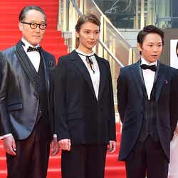 女優陣はそれぞれ、ドレスや和装など、華やかな衣装を着こなした。映画「の・ようなもの のようなもの」(2016年1月16日公開)に出演する北川景子は、美しい背中をあらわにしたブラックのドレス姿で、主演の松山ケンイチらとともに登場。「北川さん~!!」と割れんばかりの歓声に包まれた北川は、気品あふれる笑顔でファンへサインをするなどして対応。大勢の観客から視線を集めていた。映画「残穢【ざんえ】-住んではいけない部屋-」(2016年1月30日)で主演を務める竹内結子は、左肩を露出させたブルーのロングドレスで気品を漂わせ登場。ラメ入りのシックなブラックドレスに身を包んだ共演の橋本愛らと、レッドカーペットをかっ歩した。