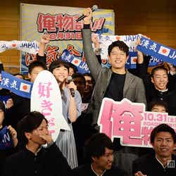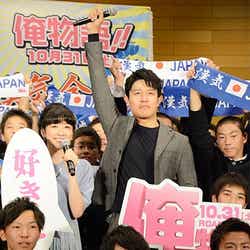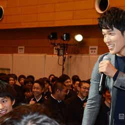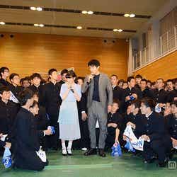 25日、都内男子高にて行われた映画『俺物語‼』公開直前“漢気”イベントに俳優の鈴木亮平と共に出席。試写後、男子生徒300人が集まる体育館に登場した。