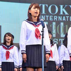 30日、都内で行われた映画「桜ノ雨」(2016年3月公開)の舞台挨拶に、山本舞香・広田亮平・halyosy氏・ウエダアツシ監督、浅香航大らと出席。衣装のセーラー服に紫色のマントと帽子を合わせたハロウィン風コスプレで登場し、観客を魅了した。(modelpress編集部)
