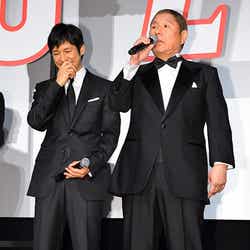 同日、都内にて初日舞台挨拶が行われ、西島のほかビートたけし、香川照之、伊勢谷友介、松坂桃李、池松壮亮、羽住英一郎監督が登壇した。イベントでは、マスコミ向けのフォトセッション後、登壇者たちがステージからクラッカーを客席へ一斉に発射する演出も。たけしのギャグにちなんで全員が“コマネチ”のポーズに構えてクラッカーを発射し、同作の封切りを盛大に祝った。