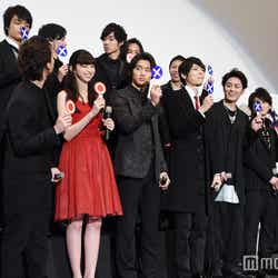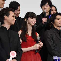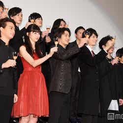 古屋兎丸氏のロングセラーコミックを映画化した『ライチ☆光クラブ』(2月13日公開)のプレミア上映イベントが1日、都内で行われ、主演の野村周平をはじめ古川雄輝、中条あやみ、間宮祥太朗らキャスト陣がドレスアップして集結。作品にまつわる○×トークの中で、古川と間宮が話題となっている“禁断のシーン”について語り、会場を盛り上げた。