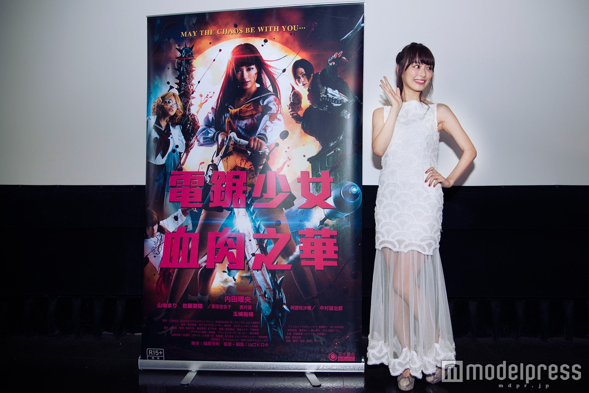 「月刊コミックビーム」にて連載中の三家本礼氏による同名漫画を実写映画化した同作。内田が演じる女学生の鋸村ギーコが、次々にクラスメイトが改造人間に変貌する環境下において、自前のチェーンソーで迫りくるゾンビと戦う痛快アクションムービーとなっている。レースのドレスから大胆に美脚をのぞかせたスタイルで出席した内田に対し、現地記者から「なぜあなたのような人がこのような真逆のキャラクターを演じたのか!?」と質問が飛ぶと、内田は「ゾンビと戦うのが好きで、戦う強い女性にいつも憧れていたので、抵抗なく演じることができた」と回顧。その後も、「撮影中、怪我はありませんでしたか?」「ちゃんとトレーニングの時間はありましたか?」などと役柄とのギャップに皆驚いていた。
