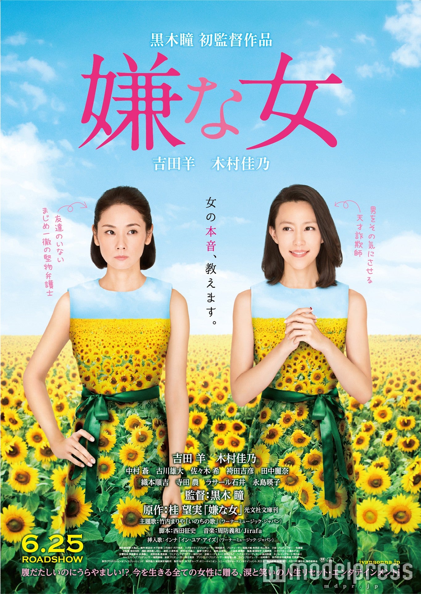 同作は、桂望実氏のベストセラー小説「嫌な女」(光文社文庫刊)を黒木が初監督する話題作。境遇も立場も違う対照的な2人の女性の人生を鮮やかに描き出し、女性の強さと友情をコミカルに、高らかに謳いあげた、今を生きる全ての女性たちに贈る感動の人間ドラマ。人と打ち解けられず友達もいないまじめ一徹の弁護士・石田徹子役を吉田、派手好きで社交的な天才詐欺師・小谷夏子役を木村がそれぞれ演じる。佐々木希ら豪華出演者が発表