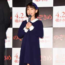 「のぞきめ」は、誰もが一度は感じたことがある「見られている」という恐怖心を描いたホラー作品。板野は、ある青年の怪死事件を取材したことから、禁じられた廃村に伝わる化け物“のぞきめ”にまつわる真相を追うことになるテレビ局の新米AD・三嶋彩乃を演じる。板野は「ホラー自体がすごく苦手でしたので、今までホラー映画を観たことがなかったのですけど」とした上で、同作の三木康一郎監督が手掛けたホラーシリーズ『トリハダ 』だけは見ることができたエピソードを紹介。「初主演映画を三木監督に撮ってもらえるということがすごく楽しみでした」と映画初主演を振り返った。