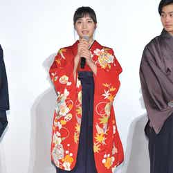 モデルで女優の広瀬すずが19日、都内で行われた映画「ちはやふる-上の句-」(3月19日より全国公開)の初日舞台あいさつに、野村周平・真剣佑・上白石萌音・矢本悠馬、森永悠希、小泉徳宏監督と出席。役衣装に袴姿で登壇。広瀬と上白石をべた褒めした。