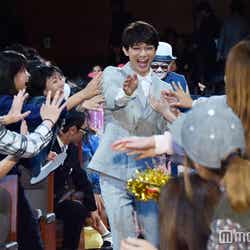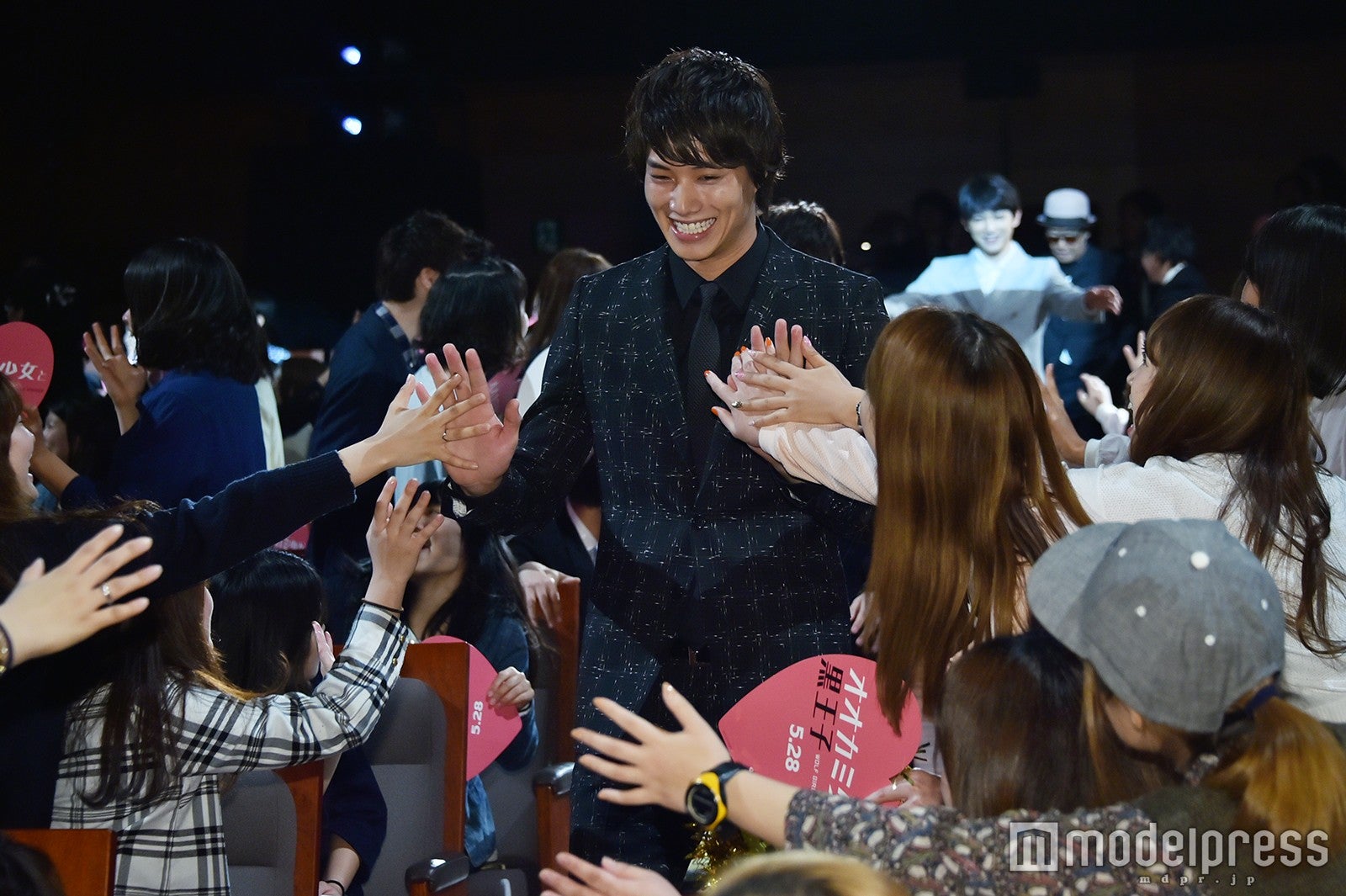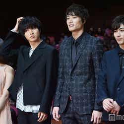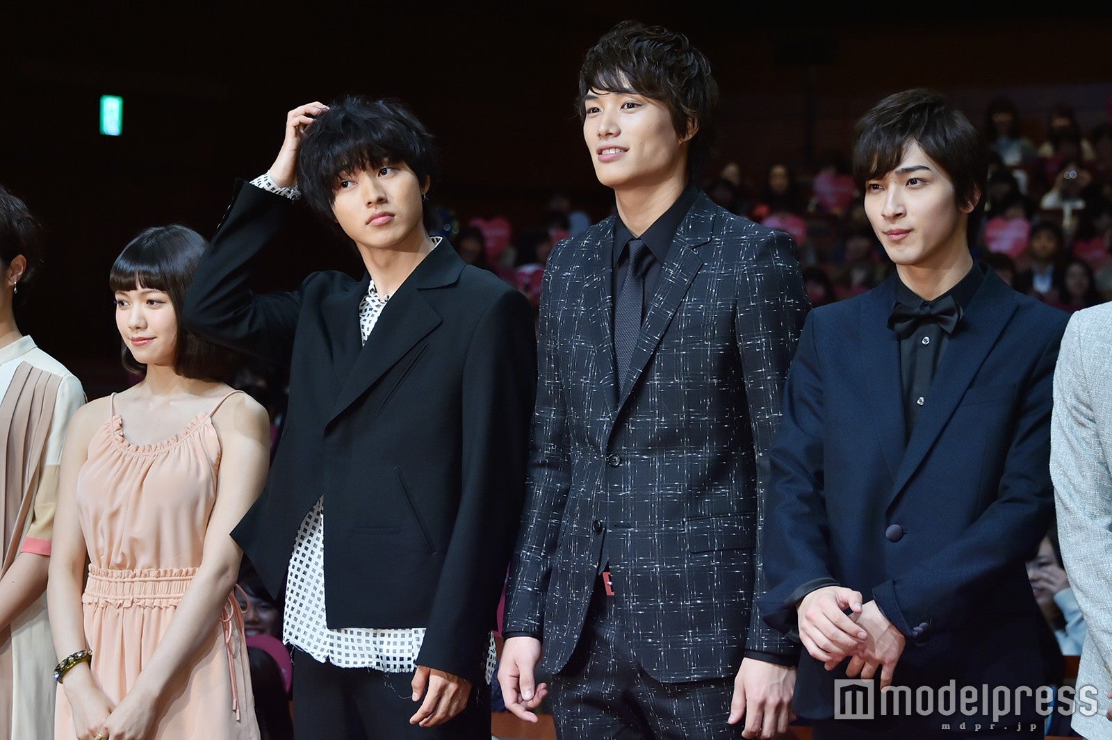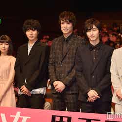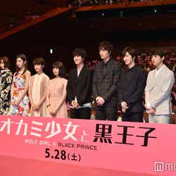 27日、都内にて映画『オオカミ少女と黒王子』(5月28日公開)のジャパンプレミアが開催され、W主演の二階堂ふみ、山崎賢人(※「崎」は正式には「たつさき」)らメインキャストが登壇した。山崎をはじめ鈴木伸之、吉沢亮、横浜流星らイケメン勢揃いに女性ファンの黄色い歓声が止まず、舞台上の二階堂も思わず「みんなイケメンだなぁ」とうっとり。特に“お亮”の歓声を浴びた吉沢については「私も今あそこ(観客席)に混じって、一緒に『お亮!』って言いたいなって。劇中でメガネをかけてらっしゃったんですけど、輝きがボロボロこぼれてた。平成のアラン・ドロンのような輝きがある」と絶賛のコメントを送っていた。