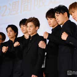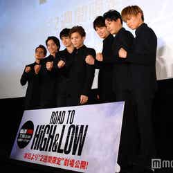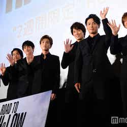 7日、都内にて映画「ROAD TO HiGH&LOW」(2週間限定公開)の公開初日舞台挨拶が行われ、岩田剛典(EXILE/三代目J Soul Brothers from EXILE TRIBE)、鈴木伸之(劇団EXILE)、町田啓太(劇団EXILE)、山下健二郎(三代目JSB)、佐藤寛太(劇団EXILE)、佐藤大樹(EXILE)、今市隆二(三代目JSB)が登壇した。5つのギャングチームの抗争を描いた同シリーズ。イベントでは岩田が佐藤にアントニオ猪木風に“ビンタ”をお見舞いする劇中シーンを再現して会場を盛り上げた。