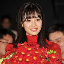 女優の広瀬すずが8日、都内で行われた映画「ちはやふる-上の句・下の句-」(全国公開中)の二部作イッキミ上映会後の舞台挨拶に、小泉徳宏監督とともに登壇。数々のPRイベントを行ってきた2人だが、同イベントがラストということから、監督から広瀬へ「前へ進め」の花言葉を持つ“赤いガーベラ”をサプライズでプレゼント。さらに激励のメッセージを送られると、広瀬は「私、あの日(下の句の初日舞台があった先月29日)から涙腺が、意味がわからないくらい崩壊していて…」と号泣した。
