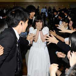 山崎は、「賢人くん!」の声に手を振って応えながら、「こんなすごい熱気で迎えてくれて嬉しいです。僕は絶対女子校には入ることが出来ないので楽しいだろうな~」と笑顔をこぼすと、一際大きな歓声が起こっていた。