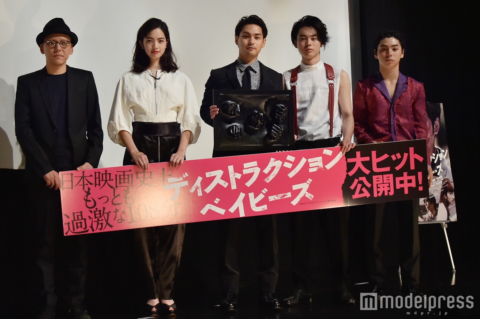 21日、都内にて映画「ディストラクション・ベイビーズ」公開初日舞台挨拶が行われ、柳楽優弥、菅田将暉、小松菜奈、村上虹郎、真利子哲也監督が登壇。イベントでは、同作で喧嘩を繰り返す主人公・泰良をわずかなセリフで演じきった柳楽を、所属事務所の先輩である山田孝之が「柳楽優弥ってマジですげぇよ!」と絶賛したというエピソードが紹介された。