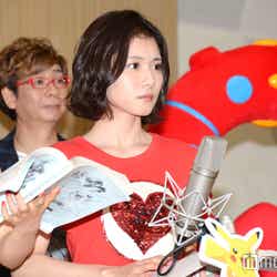 女優の松岡茉優が28日、都内で行われた映画「ポケモン・ザ・ムービーXY&Z『ボルケニオンと機巧(からくり)のマギアナ』」(7月16日公開)のアフレコイベントに、市川染五郎、中川翔子、あばれる君、山寺宏一、湯山邦彦監督と出席。テレビ東京系バラエティ番組「おはスタ」にて、2008年から2年間おはガールとして山寺と出演していた松岡は、おはガールの先輩が声優として山寺と共演した時に、「山ちゃ~ん」と抱きついたため、周囲から「(あの女優に抱きつかれるなんで)山ちゃんすごい」との声があがっていたことを紹介。当時、そのシチュエーションにあこがれを持ったようで、「絶対いつかこれ(ハグ)をやろうと誓った」と回顧した。
