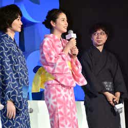 俳優の神木隆之介が7日、都内にて行われた映画『君の名は。』(8月26日公開)完成披露舞台挨拶に、上白石萌音、長澤まさみ、谷花音、市原悦子、新海誠監督とともに出席。七夕当日ということで、キャスト陣は浴衣姿で登場し、短冊に書いた願い事を披露。新海監督のファンだという神木は、「監督と話したい!だから…カフェに行きましょう」と熱烈なラブコールを送った。