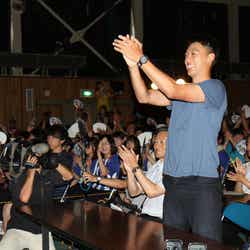 この日、竹内は何も知らされていない全校生徒920名が集まる体育館に登場。大歓声の中、迎えられたが「一人での登場だったので、盛り上がるか心配でした(笑)」と不安もあったようで、「本当に温かく出迎えてくださってありがとうございます」と感謝。また、演じた山田大介が野球部ということから「僕自身は高校時代サッカーをしていましたが、映画では高校球児を演じるために一生懸命練習しました!(生徒の野球部員に向かって)練習したんだよ!ちゃんと!」と主張する一幕もあり、生徒たちは爆笑していた。