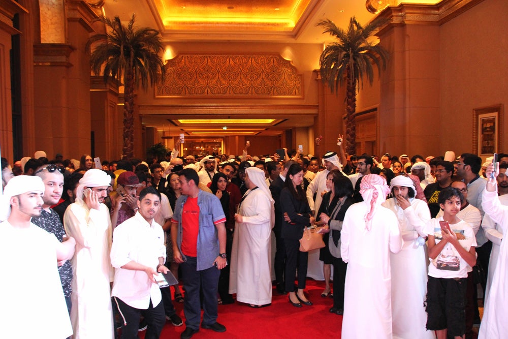 ファンやマスコミはアブダビのみならず、ドバイ、クウェート、カタールなど中東の広範囲から集結。キャストだけでなく、日本から来たメディアや関係者にも熱心に声をかけて取材をするなど、同作の注目の高さが伺いしれた。いざ、3人がレッドカーペットに登場すると、声援や口笛が響き渡る会場。彼女たちは、驚きながらも手を振って応えていた。