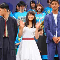 この日は、本編でもエキストラとして参加した国立音楽院ブラスバンドチームも登壇。甲子園のアルプススタンドを模した壇上に上がり、劇中の重要なシーンで演奏された楽曲を生演奏した。そしてその音楽に合わせ、キャスト陣が客席へ向かって「かっ飛ばせ~!」とエールを送り、盛り上げた。(modelpress編集部)