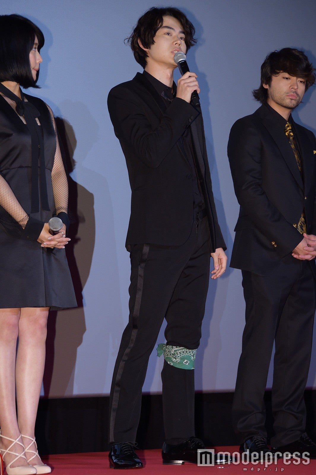 有村はピンク、二階堂はオレンジ、岡田は紫、菅田は緑、山田はゴールドのアイテムをそれぞれ紹介。スーツの上からバンダナを巻いて個性を発揮させていた菅田へ、佐藤が「君の生きざまを表してるようで俺は好きだよ」と褒めちぎると、菅田は「膝痛めてる系男子です」とコンセプトを明かし、会場の笑いを誘っていた。