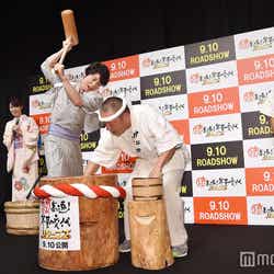 さらに、姫から殿へのお餅のファーストバイトも行われ、深田は「ファーストバイトをしたことがないので、お餅で貴重な経験をさせていただきます」とコメントして、佐々木にお餅を食べさせると、佐々木は「今まで食べたお餅の中で一番美味しい。温かいし、深田恭子さんが食べさせてくれるんですよ。もう嬉しいですわ」と感無量な様子だった。同作は、2014年公開の映画「超高速!参勤交代」の続編で、巨悪な老中による無理難題を知恵と工夫で乗り越え、江戸への参勤を果たした弱小で貧乏な湯長谷藩一行が、その帰り道に途方もない沙汰を下され、さらなる窮地に陥りながらも奮闘する姿を描く。(modelpress編集部)