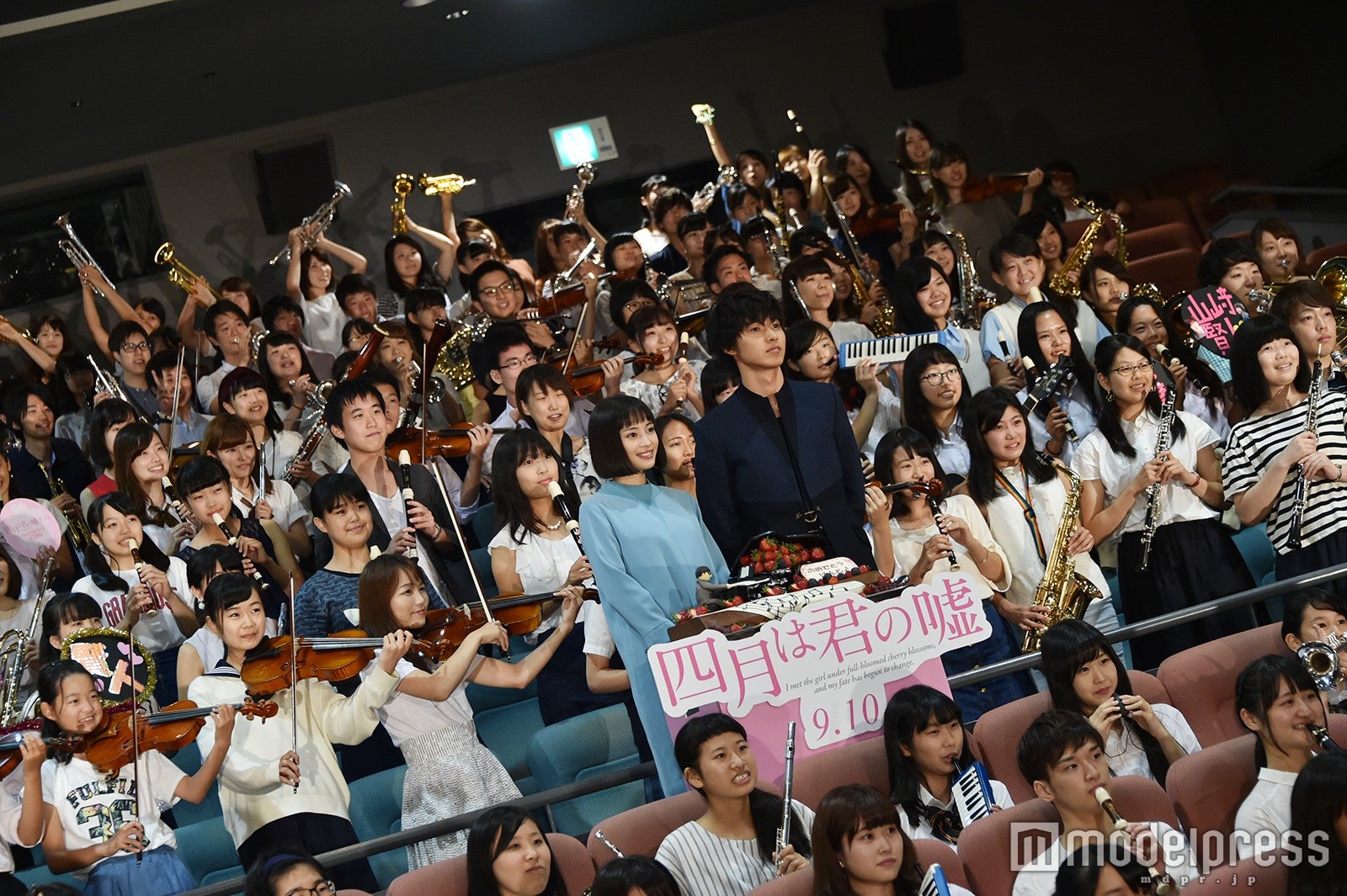 映画『四月は君の嘘』(9月10日公開)の公開直前イベントが6日、都内で行われ、W主演をつとめる広瀬すず、山崎賢人( ※「崎」は正式には「たつさき」)が出席。7日に22歳の誕生日を迎える山崎にサプライズイベントが行われた。