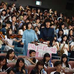 映画『四月は君の嘘』(9月10日公開)の公開直前イベントが6日、都内で行われ、W主演をつとめる広瀬すず、山崎賢人( ※「崎」は正式には「たつさき」)が出席。“青春音楽ラブストーリー”の同作にちなみ、互いの恋愛観についてトークを繰り広げた。