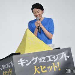今月24日に永野が17歳の誕生日を迎えるとあり、玉森が「9月24日は何の日だと思いますか?」と切り出し、観客とともにサプライズで永野を祝福。作品にちなんだピラミッド型のケーキが登場すると、永野は「えー!すごい」と感激。綺麗にデコレーションされたケーキをじっくり眺めながら「かまぼこみたいなのが乗ってます!」と無邪気に話したり、一口食べて「この味は…感じたことはあるんですけど、何味だろう?」と考えこんでしまったりと、天然っぷりを発揮させ会場を和やかな空気に包んだ。