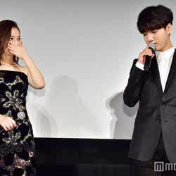 映画祭という晴れの舞台とあって華やかにドレスアップした主演の2人。佐々木は「今日はロングドレスなんですけれど、今年の流行のベルベットを使ったレースです」と着こなしを紹介。足元が透けたセクシーなデザインに歓声が上がるなか、「肌見せです。今日は大胆に来させていただきました」と照れ笑いを浮かべた。それを見たイェソンも「可愛い!シースルー?!今気づきました」と透ける美脚に思わずドキッ。「すごいですね。シースルーでありながらベルベットということで、今日の天気にぴったり合っていると思います」と絶賛し、自身の装いについては「僕はドキドキしている気持ちを込めて、心臓のあたりにバッチをたくさんつけてきました」とお茶目にアピールしていた。