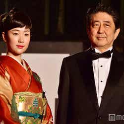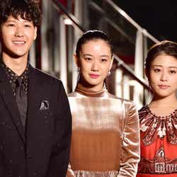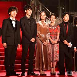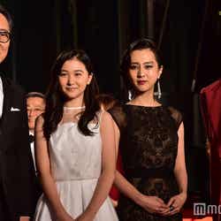 映画「アズミ・ハルコは行方不明」に出演する蒼井優と高畑充希。光沢のある上品なゴールドドレスをまとった蒼井と、耳元にパールを輝かせてペイズリー柄のワンピースを着こなした高畑。共演の葉山奨之らとレッドカーペットを上品に闊歩した。メリル・ストリープ