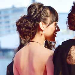 短編映画「うつくしいひと」で主演をつとめる橋本愛は、上品な花柄が施されているブラックのロングドレスで大人の色気を醸し出しながらレッドカーペットに登場した。佐々木希