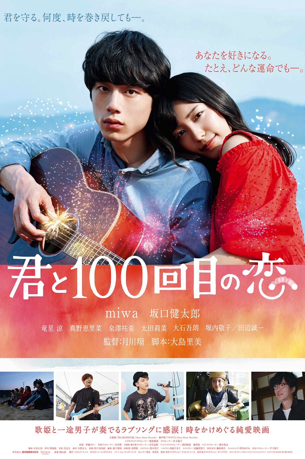同作は、miwa演じる大学生・葵海を事故から救うため、坂口演じる幼なじみの陸がすべてをかけて何度もタイムリープする物語。彼女の運命を変えるために100回人生を捧げようとした一途な男子を坂口が、彼の1回の未来を守るために自分の運命を決めた切なさと強さを併せ持つ彼女をmiwaが演じる。この度解禁された映像には、愛する彼女の悲しい運命を変えようとした陸(坂口)と愛する彼の未来を守ろうとした葵海(miwa)が、時を駆け巡りながら究極にお互いを想いあう様子。「好きだよ、お前のことが…」と陸からの告白、「ずっと一緒にいようねー」と叫ぶ葵海、浴衣デート、ハグ、キス寸前…と胸キュン必至の映像が詰め込まれている。