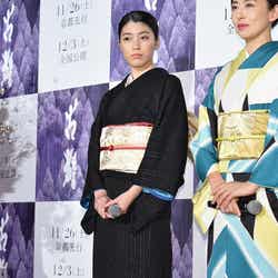 女優の松雪泰子、橋本愛、成海璃子が9日、都内で行われた映画『古都』(12月3日全国公開)の完成披露舞台挨拶に出席した。