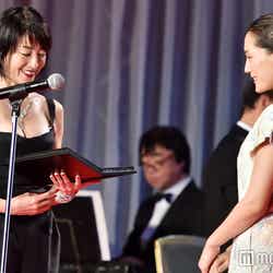 また、あまり映画館で自身の作品を観ないそうだが、同作は映画館の一番後ろの席で鑑賞したといい、「すごくたくさんのお客様が座席に座って笑ってくれたり、サラリーマンの方がすごく大きなタオルで顔を拭いながら泣いているのをみて、演じることとか映画に参加するっていう貴重さと意味をすごく感じました」としみじみと吐露。「これからもお客様の心を揺さぶられるような表現ができるように誠実に頑張っていきたいと思います」と意気込みを語った。前年「海街Diary」で同賞を受賞した女優の綾瀬はるかは、プレゼンターとして楯を授与し、「いつも力強くて女優さんとして輝いてらっしゃるし本当に憧れます」と宮沢へ祝福の言葉を贈った。