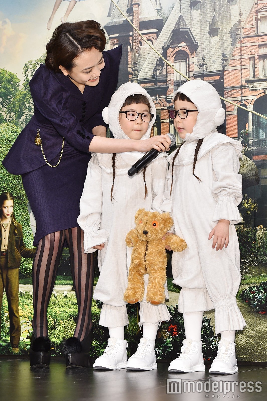 モデルで女優の松井愛莉が31日、都内で行われた映画「ミス・ペレグリンと奇妙なこどもたち」(2月3日より全国公開)ティム・バートン監督来日記念記者会見に、双子の姉妹・りんかちゃん&あんなちゃんとともに出席した。