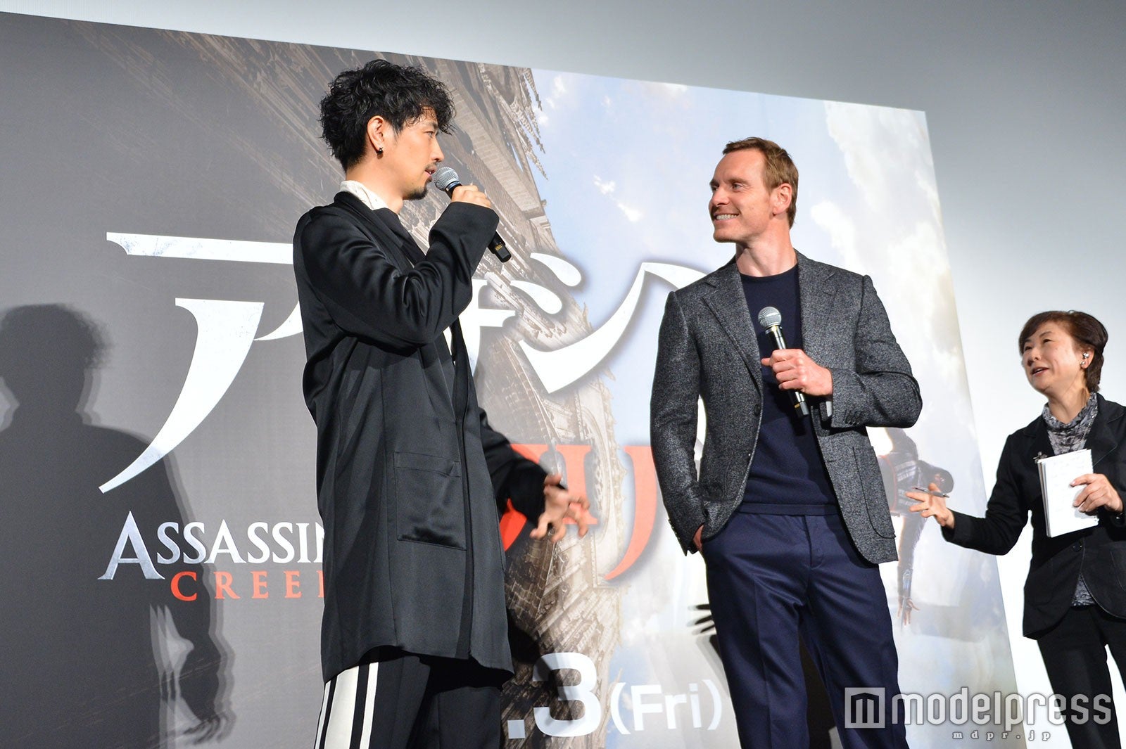 俳優の斎藤工が15日、都内にて開催された映画「アサシン クリード」(3月3日公開)のスペシャルイベントに登場。同作で主演を務めるマイケル・ファスベンダーとのトークでは、世界観溢れる“たとえ”を連発し、観客を楽しませた。