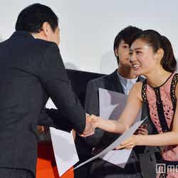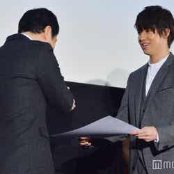 山崎は「公開記念証書」を「公開記念しょうしょう」と間違え、笑いを起こすも、気を取り直し「公開記念証書、川口春奈殿」と川口に向けて「現場ではいろいろありがとう。ユーモアたっぷりな春奈ちゃん最高!」と感謝。