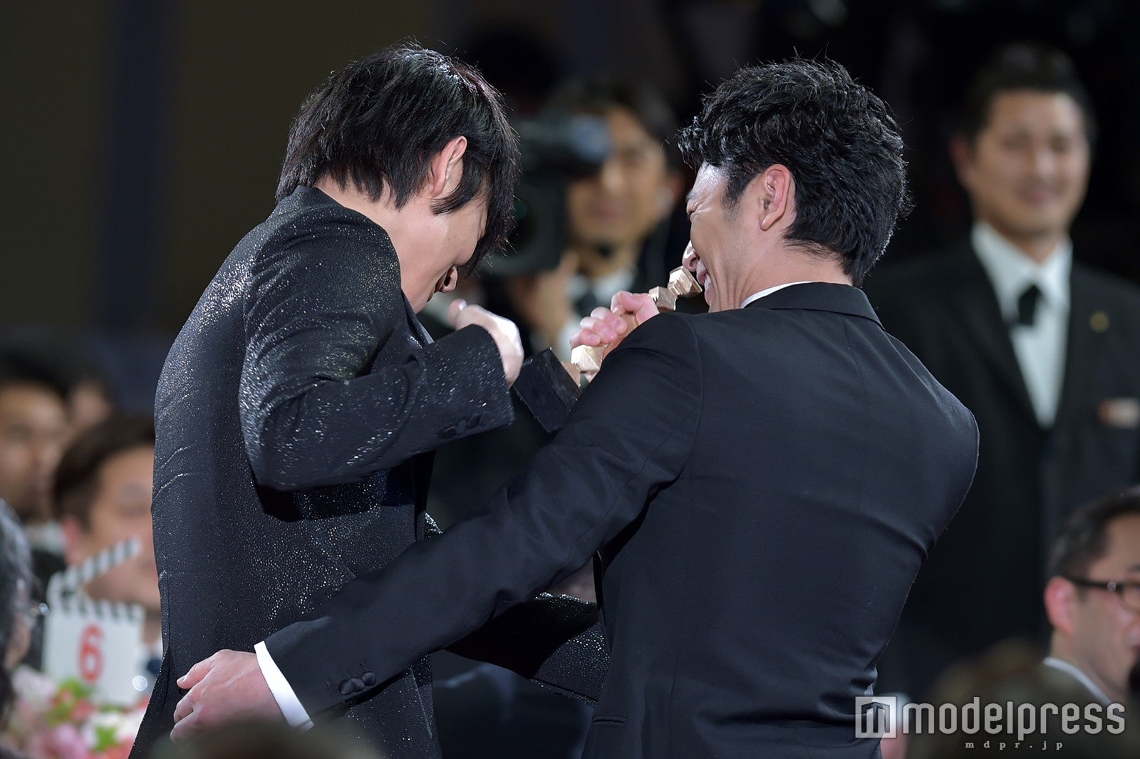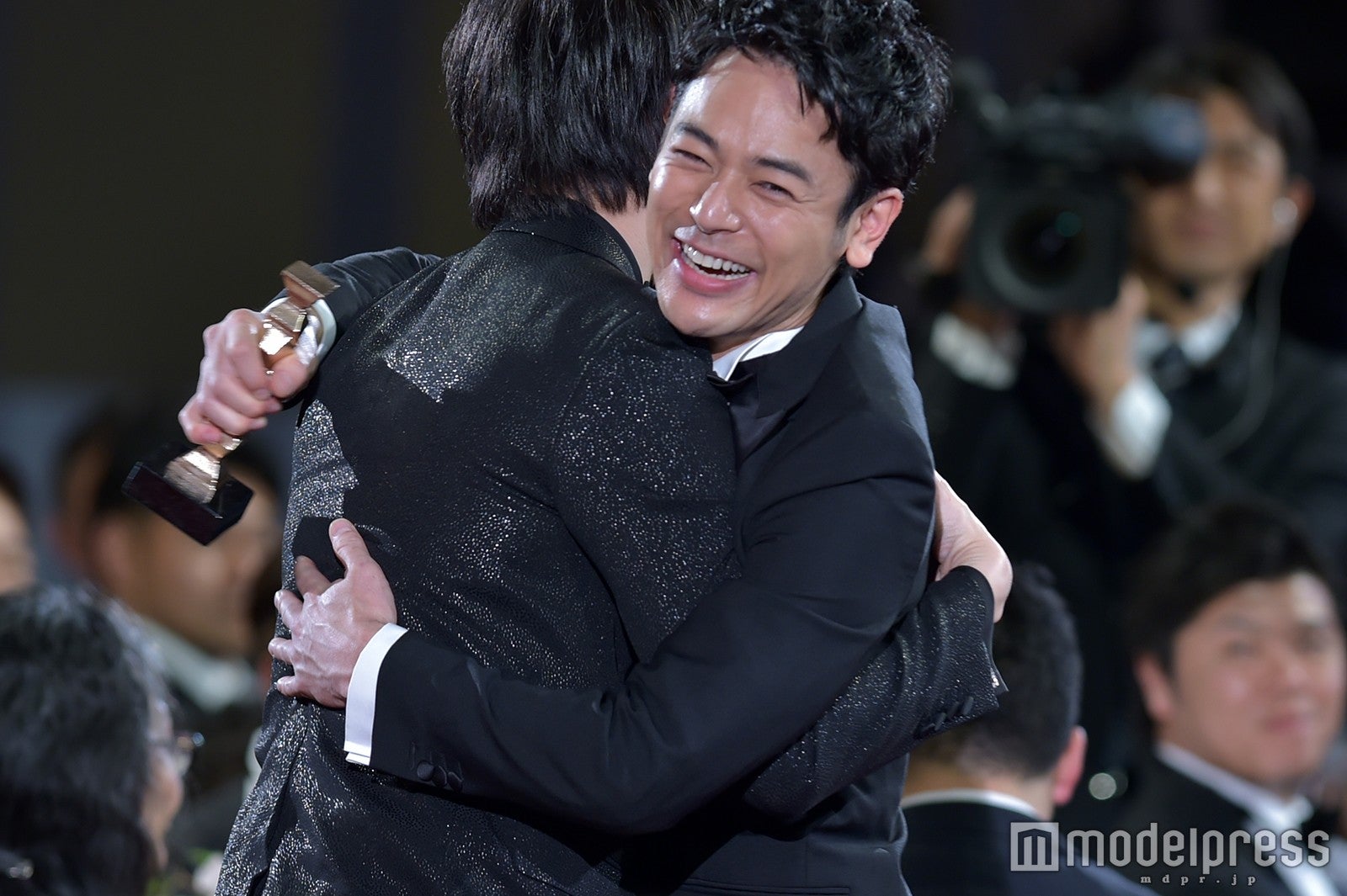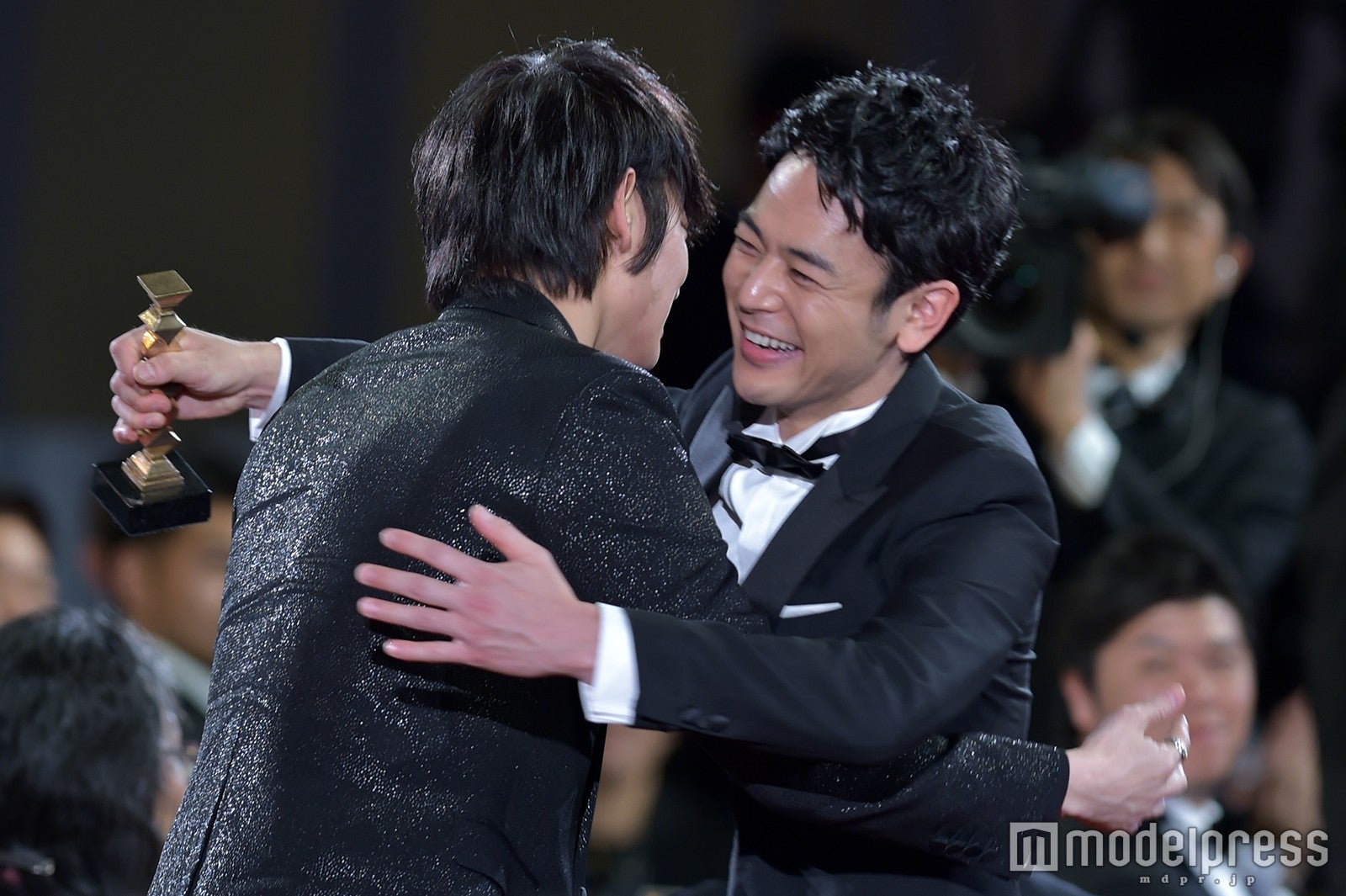 妻夫木聡、最優秀助演男優賞で“恋人”綾野剛ガッツポーズ&歓喜のハグに会場沸く<第40回日本アカデミー賞>モデルプレス