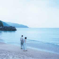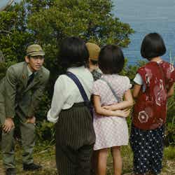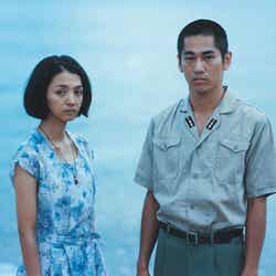海辺では生徒に囲まれ優しい笑顔を浮かべ、朔中尉の横では少し緊張した表情をみせるなど、満島演じる主人公トエの様々な表情も印象的。二人が出会った島の情景と二人の恋が伝わる場面写真となっている。