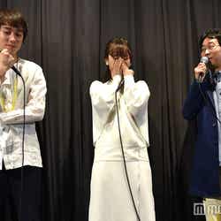 舞台あいさつでは、タイトルにちなみ“私は○○を招く”をテーマにトークを展開。キャスト一同「(お題が)難しい」と頭を抱える中、松井は「空耳を招く」と回答。「耳があまりよくないというか…、頭の回路の中で理解がおかしくなっちゃうときがあって、さっき那須さんが『福山雅治がいた』って言っていて、スペシャルゲストの福山雅治さんが来てくれるんだと思ったら…なんて言ったんでしたっけ?」と那須に投げかけると、那須は「トイレに入るの不可能だった」と紹介した。