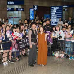 浦東(プードン)空港に2人が到着するやいなや、待ち受けていた現地ファン500人以上が到着出口に殺到。ポスタービジュアルを用いた手作りうちわや横断幕で迎えられた上戸と斎藤は、驚きながらもサインや写真撮影に応じていた。