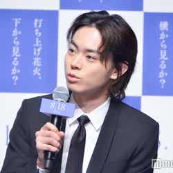 俳優の菅田将暉と女優の広瀬すずらが11日、都内で行われたアニメーション映画「打ち上げ花火、下から見るか?横から見るか?」(8月18日公開)の記者会見に出席。本格的に声優を初めて務める菅田は、広瀬とのアフレコを振り返った。