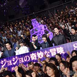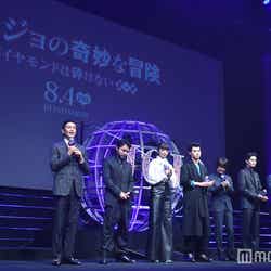 荒木飛呂彦氏の人気コミック「ジョジョの奇妙な冒険」を実写映画化する『ジョジョの奇妙な冒険 ダイヤモンドは砕けない 第一章』(8月4日公開)のジャパンプレミアが26日、都内で行われ、主演の山崎賢人(※「崎」は正式には「たつさき」)をはじめ神木隆之介、小松菜奈、岡田将生、新田真剣佑、山田孝之、伊勢谷友介、三池崇史監督が登壇した。