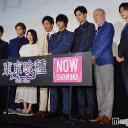 俳優の窪田正孝と鈴木伸之が29日、都内で行われた映画『東京喰種 トーキョーグール』(公開中)の初日舞台挨拶に共演の桜田ひより、大泉洋、村井國夫、小笠原海、白石隼也、萩原健太郎監督と出席した。