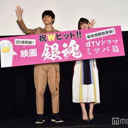 週刊少年ジャンプで連載される空知英秋氏の人気漫画を主演・小栗旬、脚本/監督・福田雄一氏で実写化。劇場版と同じキャスト、スタッフで原作の人気エピソードを実写化したオリジナルドラマ『銀魂-ミツバ篇-』は特殊警察・真選組を中心とした“泣ける”ストーリー。吉沢が劇場版と同じく沖田総悟役、北乃がその姉・ミツバ役でドラマオリジナルキャストとして参加している。この日は「ミツバ篇」がdTVオリジナルドラマ歴代1位の視聴数を記録したことを受けて、興収20億円を突破した劇場版とあわせて上映され、“Wヒット”に感謝を伝えた2人。劇中で真選組・土方が“マヨ党”であることにちなみ「2人は何党か」との質問が投げかけられると、吉沢は「ビール党ですね」と即答。「ビールは飲まない日がないですからね。この1年くらい、飲んでない日がない」とビールへの愛を語りながらも「最近はプリン体オフのやつに変えました。さすがにヤバイなと思って」と弱冠23歳にして身体を気遣う発言で笑わせていた。(modelpress編集部)