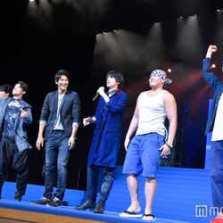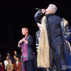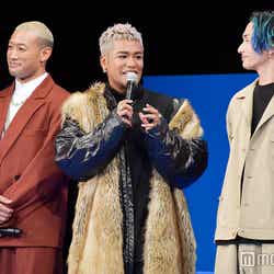 また、「MIGHTY WARRIORS」には今回からTHE RAMPAGE from EXILE TRIBEのメンバーでELLYの実弟であるLIKIYAも参戦。同じチームとして映画に出演することになったELLYは「LIKIYAちょっと来て」と後列にいた弟を前に呼ぶと、メンディーと3人で並び「どうでしょう?3人の並びは?“あんこ三兄弟”みたいな?」と場を盛り上げる場面もあった。