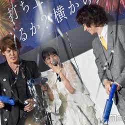 同作のキャッチコピーである「もしも、あのとき…」にちなみ、後悔している夏の思い出の話題に。菅田は、先日大きな浮き輪をプレゼントされたそうで「なかなか海に行く機会もないから家で膨らませてみた」と告白。家に遊びに来ていた俳優仲間の間宮祥太朗らと“浮き輪を縦に置き、真ん中の穴をめがけて飛び込む遊び”をしたところ、「それで浮き輪が壊れちゃったから、あの遊びやんなきゃよかったなって。海に行く前に浮き輪壊れちゃったから後悔してます。ちょっと使い方間違えちゃった(笑)」と語り、会場を笑わせていた。